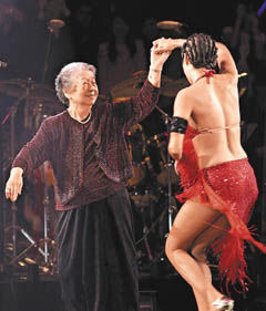 另一波驚喜出現(xiàn)在他唱《迷迭香》時,舞蹈老師阿宏突然請坐在臺下的周董外婆上臺,原來外婆是國標舞高手,80多歲寶刀未老,在杰倫的帶動下,與女舞者即席表演了一段,技驚四座,香港傳媒以“令觀眾拍爛手掌”形容現(xiàn)場的熱烈。