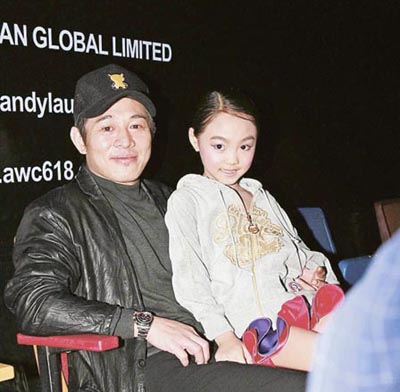 據(jù)香港明報(bào)報(bào)道,華仔前晚(12月24日)在個(gè)唱表演拉丁舞時(shí),多了一名舞藝精湛的7歲小妹妹,當(dāng)華仔介紹這位小妹妹是李連杰的女兒Jane Li后,令全場起哄。阿Jane事后回到臺下李連杰身旁,華仔即對李連杰說:“杰哥,多謝你囡囡今晚跟我表演,她真的跳得很好,今晚你來支持,我十分感動!比A仔更叫小Jane等他再年輕些,到時(shí)再一起跳舞。