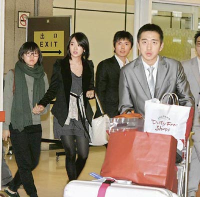 中新網(wǎng)1月3日電 據(jù)香港明報(bào)報(bào)道,尹恩惠昨日赴臺(tái)灣為韓劇《咖啡王子一號(hào)店》宣傳,第四次到臺(tái)的她以黑衣人造型現(xiàn)身機(jī)場(chǎng),近百粉絲一早到機(jī)場(chǎng)接機(jī),其影迷會(huì)成員更大唱韓文歌《我會(huì)永遠(yuǎn)愛(ài)你》送給偶像,令尹恩惠十分驚喜,不禁駐足細(xì)聽(tīng)。但后來(lái)圍觀人數(shù)愈來(lái)愈多,本來(lái)笑容滿(mǎn)面的她被嚇得木無(wú)表情,最后在6名保安保護(hù)下匆匆上車(chē),連行李都忘記拿。