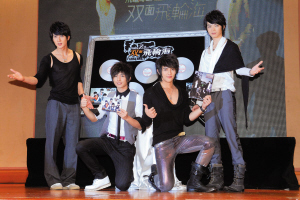 超人氣組合飛輪海將于今天全亞洲發(fā)行他們的第二張專輯《雙面飛輪海》,昨日他們赴香港舉行亞洲記者會(huì)招待會(huì)。雖然人氣超高,但他們?yōu)榱诉@張新專輯的宣傳依然非常賣力,連一向惜肉如金的吳尊也來(lái)了一個(gè)“胸”前大解放,以透視裝露點(diǎn)出席記者會(huì)。