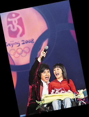 古巨基獲央視與奧委會邀請,出席在北京舉行的新年倒數(shù)晚會,基仔與桑蘭合唱《好想好想》,由于桑蘭需坐輪椅,為遷就她及拉近距離,基仔跪地合唱,場面溫馨。對于桑蘭的印象,基仔回答:“我覺得桑蘭非常勇敢和樂天!绷硗,基仔在活動上與劉翔碰面聚舊,并說:“我最想看到劉翔在跨欄項目中再奪金牌,并希望到時油機會去現(xiàn)場加油。”
