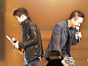 在領獎時,黃貫中領過獎座馬上急速彈開,不欲與黃家強并排而站。至于黃家強,當記者問他已解散的Beyond會否復合?他無奈地說:“我們的心不一致怎樣復合?” (綜聞)