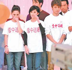 在前晚的無線直播特別節(jié)目《雪中送暖》中,阿嬌也受邀參加,除與“校長”譚詠麟等人合唱賑災主題曲《雪中送暖》外,阿嬌和阿SA還獲得了單獨表演的機會。