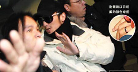 有報道稱謝霆鋒在機場現身時沒有戴婚戒,說明離婚傳聞確有其事,但真實情況可能并非如此。謝霆鋒很早前就說過,因為拍《浣花洗劍錄》時練詠春拳太賣力,左手無名指韌帶、骨頭都斷裂受傷無法伸直,婚戒也戴不上,只好將戒指串成項鏈,戴在脖子上。所以他的婚戒并不是帶在手指上的。