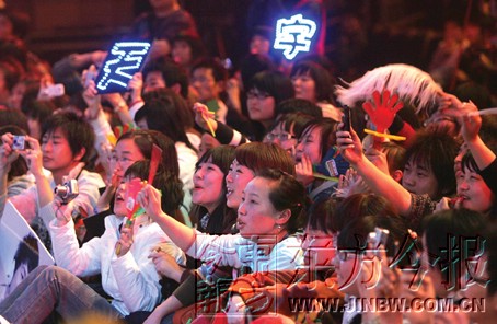 昨日中午,在文化路上的一家音像社里,馬天宇和他的“羽毛”們進行了親密接觸!拔覜]覺得自己人氣很高啊!闭勂稹坝鹈保R天宇雖然嘴上謙虛,卻笑得很開心。