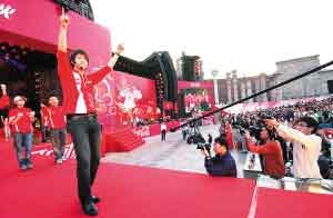 前日傍晚,由香港知名音樂人林夕和雷頌德共同為奧運(yùn)贊助商創(chuàng)作的歌曲《紅遍全球》在奧運(yùn)圣火點(diǎn)燃之際發(fā)布。在韓國著名組合Super Junior成員韓庚領(lǐng)頭下,18名來自全國各地的奧運(yùn)火炬手與前奧運(yùn)冠軍高敏等一起現(xiàn)場演繹了這首歌。作為目前韓國最當(dāng)紅的組合Super Junior(以下簡稱SJ)里面唯一一個中國成員,韓庚在中國的人氣銳不可擋,對于這次有幸擔(dān)任1號火炬手,他前晚接受本報獨(dú)家專訪時表示感到很開心,一定要看奧運(yùn)的開幕式,并且他透露今年會將大部分時間放在中國,而且SJ也會分組一隊專門針對中國市場的組合,并計劃推出中文專輯。