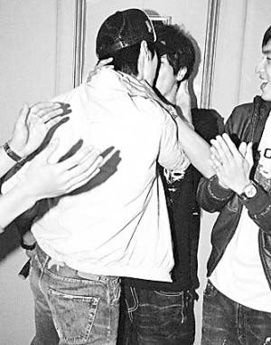 羅志祥(小豬)早前在博客上以“女友”稱呼吳尊(尊美人),還上傳兩人的親密照,一度令歌迷浮想聯(lián)翩。前晚在偶像劇《籃球火》的殺青儀式上,小豬與吳尊被要求當眾“接吻”,只見小豬作勢捧尊美人的俊臉來親,吳尊想避開也不能,上演一幕火辣辣的激吻,不過事后吳尊強調(diào)沒被小豬親到。當晚雖然言承旭因病臨陣缺席,但其他演員依然玩得情緒高漲,小豬與吳尊的“斷背吻”,當然是全晚焦點。