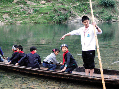 田亮一大早就跟隨節(jié)目組來到大山深處的巖撈小學(xué),該校學(xué)生大部分都是苗族和水族,原來的校舍去年被山洪摧毀了,如今的臨時(shí)教室建在半山腰,只是用編織袋簡(jiǎn)單當(dāng)墻壁圍起來的吊腳樓。學(xué)校和寨子中間有一條小河隔開,孩子們每天上學(xué)都是靠一葉小舟擺渡過河。田亮自告奮勇要當(dāng)一回“艄公”,沒想到在城里長(zhǎng)大的他撐起船來居然也得心應(yīng)手。而到了上體育課的時(shí)候,田亮更是盡顯專業(yè)素質(zhì),先帶領(lǐng)大家做熱身運(yùn)動(dòng),然后設(shè)計(jì)了足球、跳繩、平衡木、越野接力賽等科目,內(nèi)容豐富多彩。