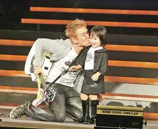 原來前天是Rati的3歲生日,她悄悄上臺,獻(xiàn)花給辛苦的老爸,見女兒如此貼心,他唱歌送女兒,臺下的粉絲也為她唱起生日快樂歌,Rati則害羞緊張地躲在爸爸背后,逗得大家大笑,屏幕還配合打出女兒的成長照片,連2個多月大的小兒子的照片也跟著曝光;當(dāng)晚嘉賓還有曹格、王菀之,搭檔合唱獲熱烈掌聲。