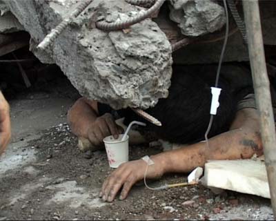 《冷暖人生》以關(guān)注人性著稱(chēng),這一次他們也將透過(guò)新聞報(bào)道,更多地記錄那些災(zāi)難背后受難者的人生巨變,力圖展示整個(gè)的救援情況,并帶回去更多人性的故事。曉楠介紹說(shuō):“現(xiàn)在我們主要有幾個(gè)方向,比如說(shuō)在都江堰,因?yàn)閺臑?zāi)區(qū)很多地方出來(lái)的人,是通過(guò)沖鋒舟被運(yùn)出來(lái)的,有很多親人在渡口上長(zhǎng)時(shí)間的等待,看運(yùn)過(guò)來(lái)的人其中有沒(méi)有自己的親人,所以我們可能會(huì)制作一期節(jié)目就叫《渡口》。記錄那些人的漫長(zhǎng)煎熬的等待,還原很多等來(lái)和沒(méi)有等來(lái)親人的故事。因?yàn)槲姨貏e想把他們還原成比較鮮活的生命,他們?cè)瓉?lái)的夢(mèng)想和生命進(jìn)程是什么,他們的喜怒哀樂(lè)突然間戛然而止。對(duì)他們來(lái)講,生命的感覺(jué),包括對(duì)他們親人來(lái)講,可能我們更能理解,這次災(zāi)難在人的身上所留下的巨痛。同時(shí),也是它所折射出人的力量是怎么樣的。另外,我們可能還會(huì)去做一些學(xué)校的采寫(xiě),用我們的視角去還原原來(lái)的一個(gè)班。總之,還是去記錄人,我們的目的是尋找人的故事,去尋找人生命的故事。當(dāng)然,還有救助的那些人,在這一時(shí)刻他們和素不相識(shí)人的命運(yùn)連在一起!