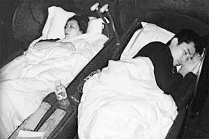 梁朝偉(偉仔)與劉嘉玲早前去戛納宣傳電影《東邪西毒:終極版》,二人5月23日返回香港時(shí),在飛機(jī)上10多小時(shí)沒有交流,從曝光的照片看,沒化妝的嘉玲面向天單手壓胸,雙唇微微張開;而偉仔愛側(cè)睡,臉壓雙手,十足嬰兒。被問到兩人在飛機(jī)上各自埋頭大睡互不理睬時(shí),偉仔對此笑稱:“睡覺時(shí)怎么交流呀?” 而專家根據(jù)兩人的睡姿分析,偉仔依賴性強(qiáng),嘉玲性格獨(dú)立。