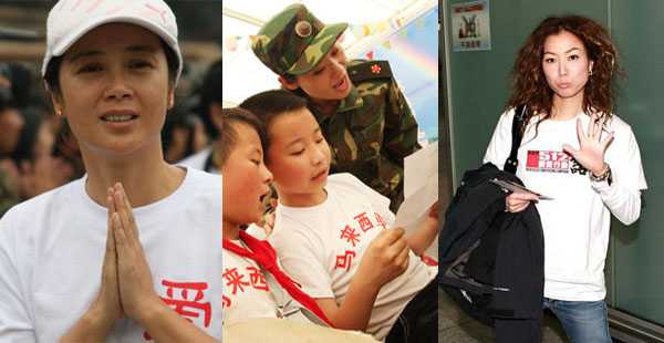 中新網(wǎng)6月2日電 四川大地震發(fā)生二十天來(lái),演藝圈抗震救災(zāi)的熱情空前高漲,越來(lái)越多的明星參加各種賑災(zāi)活動(dòng),前往災(zāi)區(qū)送溫暖。明星總是人們?cè)敢怅P(guān)注的焦點(diǎn),這些明星在受到贊賞的同時(shí),也遭到“作秀”的質(zhì)疑。高調(diào)捐款有炒作嫌疑,低調(diào)捐款被誤認(rèn)冷漠,領(lǐng)養(yǎng)孩子被視為炒作,深入災(zāi)區(qū)被當(dāng)作虛偽,明星真的好難當(dāng),下面我們回顧下這些天明星赴災(zāi)區(qū)的事跡。