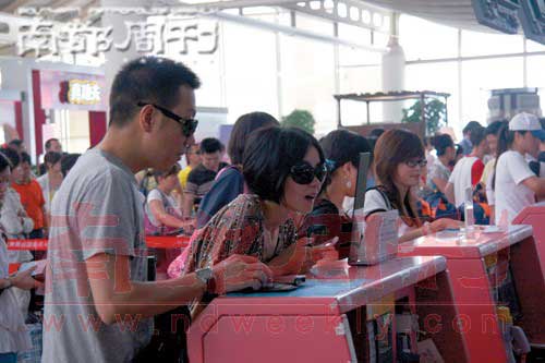 7日上午10點(diǎn),因?yàn)橐箽w而取消靈隱寺之行的王菲出現(xiàn)在酒店大堂,與李亞鵬及助手前往酒店西餐廳吃飯,看到仍有癡心歌迷守候,王菲語(yǔ)調(diào)溫柔地說(shuō):“你們快別跟了,別跟了!边關(guān)切地問(wèn):“你們今天不用上班嗎?”吃完餐出來(lái),仍有歌迷要求合影簽名,王菲想了想說(shuō):“你們等我十分鐘,我整理一下馬上下來(lái)!焙芸欤醴凭秃屠顏嗼i一起帶著大堆行李返回大堂,坐到歌迷身邊,握手、簽名、合影,對(duì)于歌迷的所有要求王菲都有求必應(yīng)。