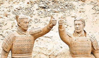 近日,由古天樂和黃曉明領(lǐng)銜主演的一部古裝廣告片在各家電視臺熱播。不過記者昨日從百事公司了解到,就在廣告拍攝現(xiàn)場竟然發(fā)生了惡性搶劫事件!按照兩人一比一大小制作的兩座兵馬俑石像,居然被不明身份的人士公然打劫了,主辦方不得不緊急追查它們的下落。