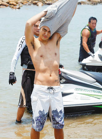 但攝影器材再厲害也沒用,因?yàn)槿罱?jīng)天被安排在離岸至少100公尺以上的海域,除非狗仔派出水底攝影隊(duì)。阮經(jīng)天下水前只略略小露股溝,跳下水后脫掉海灘褲,游了幾下又穿回去,很快回到岸上,他笑說:“剛很怕有小魚小蝦來啄耶!