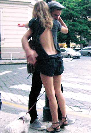 上周末,蓋提飛往布拉格,與在那里的西耶娜會合。兩人在街頭牽手遛狗,西耶娜身著一件背部全裸的輕薄衣衫,甚為風(fēng)騷。西耶娜緊緊摟著已婚富豪,親吻其面頰。而男方也是不時輕撫西耶娜面龐,滿臉柔情。