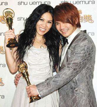 最佳國(guó)語男女演唱歌手曹格(右)、蔡健雅(左)