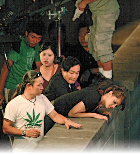 陳奕迅于香港中環(huán)蘭桂坊與一名外籍女演員拍外景,心情大好的他更不時與“鬼妹”調情及對稿,場面溫馨。(圖片來源:香港《星島日報》)