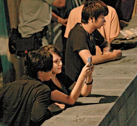 前晚8時多,身穿黑色恤衫的陳奕迅,與該名外籍女演員于蘭桂坊拍外景,場口主要是他們的談心戲。曾于英國留學多年的陳奕迅,在等就位時,除與女演員對稿外,亦以流利英語與女方言談甚歡。期間見到陳奕迅拿出一部類似“iPhone”的手提電話自娛及研究。
