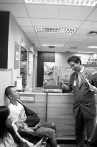 在拳打腳踢香港記者6小時(shí)后,曼谷當(dāng)?shù)貢r(shí)間23日晚上9點(diǎn),李亞鵬在王菲前經(jīng)紀(jì)人陳家瑛的陪同下,來(lái)到曼谷機(jī)場(chǎng)警局做筆錄。在當(dāng)?shù)鼐斓慕槿胂,李亞鵬和兩名被打記者經(jīng)過(guò)三個(gè)小時(shí)的拉鋸對(duì)峙,終于以“互相道歉”的形式為這場(chǎng)風(fēng)波收?qǐng)。走出警局的李亞鵬接受了在場(chǎng)記者的簡(jiǎn)短采訪,他稱,道歉并不意味著自己會(huì)放棄保護(hù)女兒的權(quán)利,“如果這樣(跟拍女兒李嫣)的事情還繼續(xù)發(fā)生的話,那么互相道歉的事情還會(huì)繼續(xù)發(fā)生”。(以下均為曼谷當(dāng)?shù)貢r(shí)間)