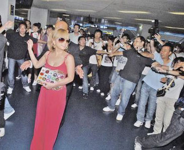 中新網(wǎng)7月25日電 日本巨星濱崎步本周二(22日)到澳門拍攝2008年月歷,匆匆逗留28小時之后,前日晚上7時許返港。換上橙紅色吊帶裙,戴上太陽眼鏡的濱崎步,獲30余名粉色送機,場面火爆。
