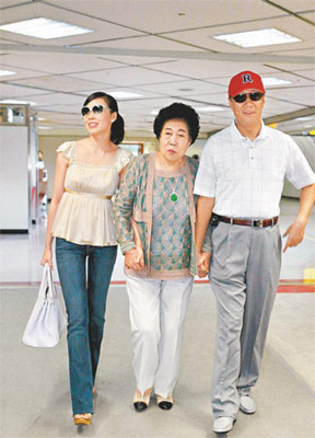 中新網(wǎng)8月7日電 2008年北京奧運(yùn)會(huì)明晚即將開幕,新婚11天的臺(tái)灣鴻海集團(tuán)董事長(zhǎng)郭臺(tái)銘攜愛(ài)妻曾馨瑩、以及母親搭私人飛機(jī)抵京看奧運(yùn)。他們一家三口洋溢天倫樂(lè),被婆婆疼惜有加的曾馨瑩一路燦笑,看不出外界指她因壓力大而落淚的神情。同機(jī)隨行的還有他們的友人張清芳及夫婿宋學(xué)仁、臺(tái)積電董事長(zhǎng)夫人張淑芬等。