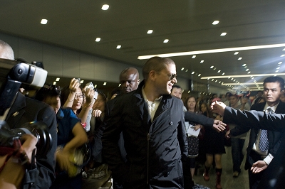 這次米勒上海之行吸引了近30家媒體到機(jī)場接機(jī),在接機(jī)過程中,媒體意外接到了郭富城和王力宏。郭富城為了避免媒體追問他和熊黛林的緋聞,提前要求上海演出方安排走貴賓通道。這讓郭富城意外避過了媒體的“追訪”。而王力宏則完全是在狀況之外,他一走出出境口,就被一擁而上的媒體驚到。當(dāng)時(shí)王力宏整個(gè)人愣了一下,不自覺地往后退,隨即低著頭避開鏡頭。讓王力宏更加納悶的是有媒體記者問他是否看過《越獄》,不知情的王力宏并沒有回答。
