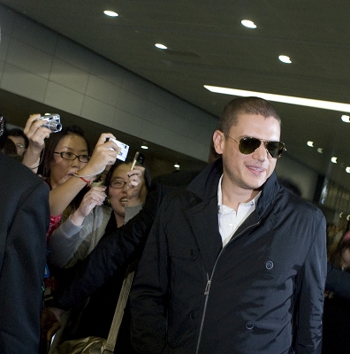 擁有8國血統(tǒng)的溫特沃斯·米勒,因主演美劇《越獄》一炮而紅,更被影迷們親切地稱為“米帥”。昨天傍晚,他乘坐美聯(lián)航UA857航班抵達(dá)上海,為今明兩天在上海舉行的ME&CITY上市發(fā)布會(huì)宣傳造勢(shì)。米帥首次上海之行,選擇了“親民”路線,在機(jī)場走普通通道,還對(duì)粉絲很貼心,更是為粉絲當(dāng)拍照“背景板”。