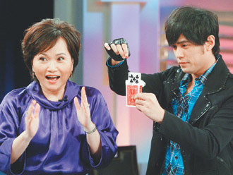 周杰倫(右)對沈春華露了一手魔術(shù)。