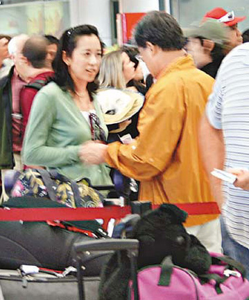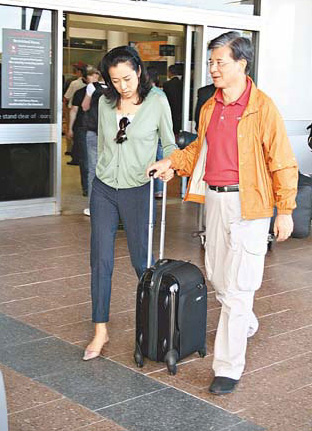 羅康瑞與朱玲玲在當(dāng)?shù)貢r(shí)間昨日早上七時(shí)許飛抵澳洲悉尼,朱玲玲雖然不施脂粉,但仍精神充沛、容光煥發(fā),加上身穿緊身Tee及針織外套,優(yōu)美身段表露無(wú)遺,難怪有靚足五十年的“最美麗港姐”之稱。丈夫羅康瑞打扮同樣樸素,身穿外套、西褲及休閑恤衫,但亦難掩其新婚喜悅,全程笑容滿面。兩人的行李中更有高爾夫球用品,看來(lái)一向熱愛(ài)運(yùn)動(dòng)的兩人,蜜月期間計(jì)劃打高爾夫增進(jìn)感情。