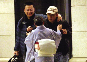 近日,記者遇到了姜文一家三口外出吃飯的溫馨場(chǎng)面。凌晨2點(diǎn)左右,姜文被攙扶著走出酒館。一同走出的還有周杰及一位友人。一行人已走出很遠(yuǎn),突然,從店內(nèi)追出一位女服務(wù)員。原來醉酒的姜文離開時(shí)忘了穿鞋,服務(wù)員親自幫姜文把鞋穿上,豪爽的姜文送上一個(gè)熊抱。