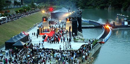 據(jù)臺灣“聯(lián)合報”報道,《赤壁》臺灣首映選在和片中主景味道相近的碧潭,光是打造不到100公尺的水上星光大道、水上舞臺,以及搭建岸邊臨時播映室,就花了千萬新臺幣,并出動50名保全。梁朝偉、吳宇森、金城武、張震與林志玲等,行走在無扶手與欄桿的水上星光大道,步伐小心翼翼。