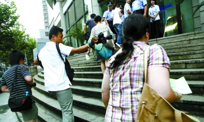 上午8點,距離開庭時間還有1小時,記者在靜安法院門口看到,多名法警已經(jīng)在門口維持秩序!捌綍r8點半上班,今天都提前來了。 ”一名工作人員告訴記者,為了這次開庭,法院做了充分準備,并購置了多臺設備。