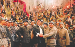 在小細(xì)節(jié)上,《解放》細(xì)節(jié)選取有度;蜉W聞,或八卦,或慷慨激昂,或催人淚下,每一個(gè)細(xì)節(jié)的選取都有著特殊的意義。毛澤東與兒女的親密中展現(xiàn)出溫馨和諧的畫面。聞一多那篇中學(xué)課本選入的演講詞,觀眾均耳熟能詳,在《解放》中得以慷慨激昂地重現(xiàn),聞一多仰天長嘯,最終死在槍下,電視劇中的悲憤情緒渲染到極致,令人震撼。細(xì)節(jié)上的細(xì)膩還見諸于片頭設(shè)計(jì)的單色長畫卷,紅色畫面中連續(xù)展現(xiàn)了三年解放戰(zhàn)爭的開篇到結(jié)束,以中原突圍開始,到百萬雄師過大江終止,凸顯歷史的厚重深沉之感。