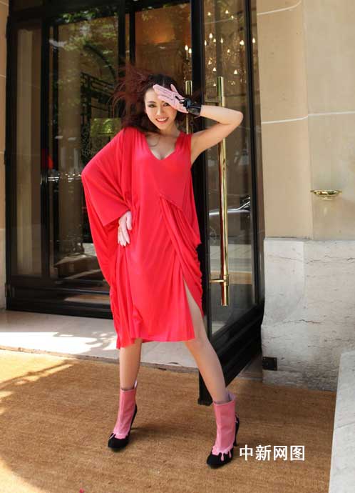 鞏新亮法國拍攝時尚大片 玲瓏曲線紅衣誘人