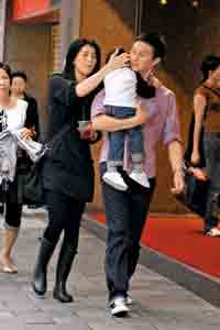 當(dāng)張智霖和太太、兒子見面后,袁詠儀發(fā)現(xiàn)有記者在場(chǎng),面色即變得非常緊張,更吩咐兒子不要望向鏡頭,其后兩人帶兒子上保母車,交由工人代為照顧,二人即走入商場(chǎng)。