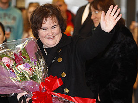 蘇珊大媽抵日明星架勢十足 機場狂送飛吻(圖)