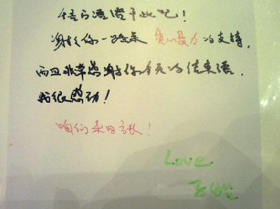博文中,姚晨還貼上了一張小卡片,這張卡片是章子怡在《非常完美》電影首映結(jié)束后,用三種顏色給她寫(xiě)的一張卡片。卡片一出就立即遭到了網(wǎng)友們的瘋狂拍磚,因?yàn)檎伦逾淖帧皩?shí)在讓人不敢恭維”。(新快報(bào))