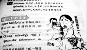 不少網友對此表示:“看看漫畫中芙蓉姐姐面對話筒的形象,用來解釋‘spectacular’是相當貼切的。這其實也符合《新概念英語》這套教材的整體個性,因為與傳統(tǒng)的教材相比,這本‘英語寶典’本來就很潮。”