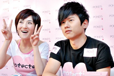 在今年初的某場頒獎典禮上,謝娜和張杰十指緊扣同臺亮相,并以男女朋友相稱,這是從“快男”比賽開始便傳出戀情的兩人在經(jīng)歷兩年的地下戀后首度“見光”。此后,兩人便一發(fā)不可收地到處秀恩愛。昨日的“反UV保護(hù)令”發(fā)布現(xiàn)場,兩人再度將“秀愛”進(jìn)行到底。謝娜在臺上嬌嗔地說:“張杰就是我心目中的完美男生,他就是很完美,各方面都很完美!倍鴱埥軇t在臺上肉麻地宣布:“娜娜是我的女朋友,我不允許我所愛的人受到任何傷害,這個(gè)夏天我要給娜娜最杰出的保護(hù)。”話音剛落,只見謝娜開始用手輕擦眼睛,以一句“是的,我們會一直走下去”作為愛的回應(yīng)。