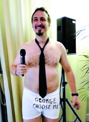 出人意料的是,一名意大利男記者也向喬治索吻:“喬治,選我,選我。我能吻你嗎?就一次!”說話間,他脫去上衣和褲子,只剩黑領(lǐng)帶和短褲,短褲前面還寫著“GEORGE,CHOOSE ME(喬治,選我)”。克魯尼處變不驚,微微一笑:“你敢冒這么大的風(fēng)險(xiǎn)非常勇敢,可惜它并不奏效。不過,你的領(lǐng)帶非常漂亮,而且很長!笨唆斈岬挠哪齺砣珗(chǎng)大笑。