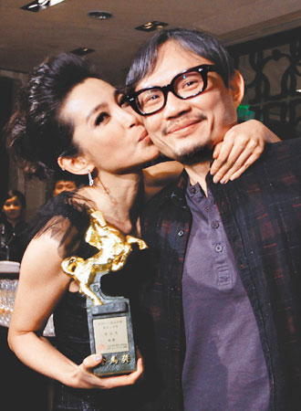 中新網(wǎng)11月30日電 李冰冰以《風(fēng)聲》封后,從唱名到領(lǐng)獎一路哭,直到昨天凌晨的慶功宴上,還直說:“好像在作夢”。意外與驚喜,竟然忘了在臺上感謝爸媽,下臺趕緊打電話到北京,拿獎當(dāng)天剛好是李爸爸農(nóng)歷生日,李冰冰說要把獎送給爸當(dāng)生日禮物,李爸爸只說“女兒,拿得不容易啊。”說著李冰冰又紅了眼眶。片中剝光李冰冰衣服凌虐她的黃曉明,發(fā)簡訊祝賀李冰冰獲獎,和李冰冰鬧說“你在臺上都沒謝我,我傷心”。