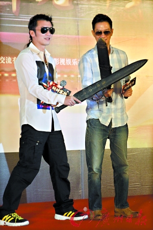 當(dāng)日,謝霆鋒第二次成為爸爸,他承認(rèn)自己現(xiàn)在心情大好,拍喜劇片正適合。二人在現(xiàn)場(chǎng)也擺開架勢(shì)比賽拔劍速度,兩人戲中有不少對(duì)打戲份,而家輝透露戲里,謝霆鋒武功高強(qiáng),“他的責(zé)任就在打,我的責(zé)任在搞”。張家輝更笑指謝霆鋒:“他生孩子很有本事!