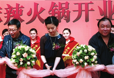 據(jù)悉,朝陽(yáng)門(mén)外悠唐廣場(chǎng)的這家店也是寧記火鍋北京首家分店。據(jù)業(yè)內(nèi)人士透露,這家火鍋店的投資人除了三大導(dǎo)演外,還有范冰冰、黃曉明和舒淇等幾個(gè)大明星。這幾位因檔期錯(cuò)不開(kāi),沒(méi)能前來(lái)出席昨天的剪彩儀式,不過(guò)他們也送來(lái)了對(duì)嘉賓的祝福和對(duì)自己新店的祝愿。由于是港式火鍋店開(kāi)業(yè),所以開(kāi)業(yè)儀式都依足了傳統(tǒng),廣場(chǎng)外眾明星嘉賓剪彩后,更有熱鬧的舞獅表演。許多逛街的白領(lǐng),突然看到眾多明星出現(xiàn),大家一擁而上,拿起手機(jī)一陣狂拍,場(chǎng)面十分混亂。