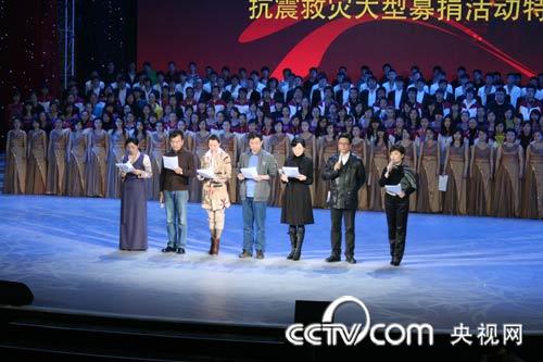 央視知名主持人周濤、朱軍、董卿、張澤群將作主持、采訪(fǎng)人;白巖松、李瑞英作新聞連線(xiàn)人;李詠、畢福劍、馬東、朱迅、任魯豫、崔永元、王小丫、撒貝寧、鞠萍、韓喬生、董浩、歐陽(yáng)夏丹、李梓萌、胡蝶、魯健等50人擔(dān)任現(xiàn)場(chǎng)捐助熱線(xiàn)電話(huà)接線(xiàn)員。