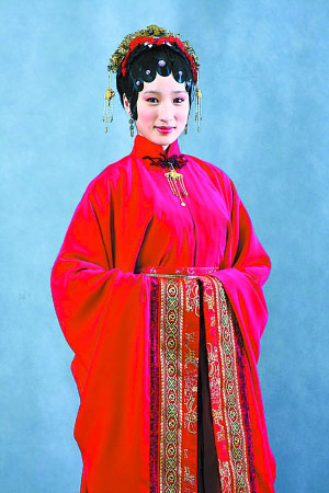 談及這一話題,李少紅很誠懇地說,葉錦添提出這種造型時她開始也覺得震驚,細(xì)品之后覺得很有道理!白钤缥覀兏~錦添談人物造型時,希望賦予一個新意,而形象上的新意是很難找的。我們查閱了很多資料,試做了很多種樣式,還是覺得這個想法最吻合我們藝術(shù)上的追求。”她介紹,十四世紀(jì)法國宮廷有著非常繁瑣的頭飾,標(biāo)志著身份和地位,中國也如是,官宦家庭衣著、頭發(fā)的裝飾性也越來越強(qiáng)。巧額和片子實際上是古代中國的貴族小姐在日常生活中常用的裝扮,它最早的作用是修正臉型,有一定美感和裝飾作用,后來經(jīng)過簡化被昆曲、京劇所沿用,流傳至今。“寶黛釵等主演采用額妝的目的,是區(qū)別不同社會階層女性的身份,其他不同等級的人物造型并非這樣,如此設(shè)計是有意與世俗文化拉開距離!
