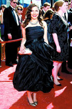 電影大明星、監(jiān)制迷你劇集《約翰·亞當斯》獲提名的湯姆·漢克斯也同夫人一同現身紅毯,憑借《伯納德與桃瑞絲》獲提名的蘇珊·薩蘭登也讓紅毯“星味”大增。去年斬獲艾美獎喜劇類最佳女主角的“丑女”亞美莉卡·弗雷拉一直深受觀眾喜愛,但今年的她胖了很多,一身并不合體的黑裙讓人實在不敢恭維,相比《丑女貝蒂》中的配角維妮莎·威廉姆斯一身山水畫風情的長裙黯然失色,只不過“貝蒂”更具喜劇效果。