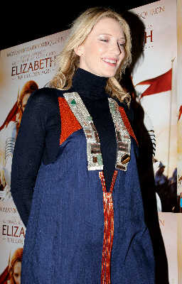 根據(jù)《悉尼先驅(qū)晨報(bào)》報(bào)道,38歲的布蘭切特前晚亮相新片《伊麗莎白2:黃金時(shí)代》的悉尼首映式,在紅地毯上被記者問及是否懷孕,她干脆地回答:“是的!倍(dāng)記者提起傳聞?wù)f她這次懷的是個(gè)男孩時(shí),布蘭切特回應(yīng)說:“你們知道的比我還多,F(xiàn)在還早呢。預(yù)產(chǎn)期在明年4月!