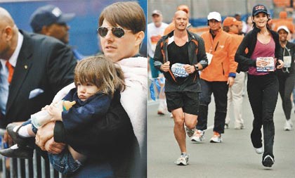 中新網(wǎng)11月6日電 據(jù)臺(tái)灣聯(lián)合報(bào)報(bào)道,昨日,紐約馬拉松路跑大賽上,出現(xiàn)一個(gè)有點(diǎn)眼熟的身影,原來正是薄施脂粉的凱蒂·荷姆絲。為了避免驚動(dòng)旁人,她以化名參加比賽,最后花了近5個(gè)半小時(shí)跑完全程,得到第58名。在計(jì)分板上,她則使用本名,而她的丈夫湯姆·克魯斯抱著小女兒蘇蕊守在終點(diǎn),等她一結(jié)束,立刻沖上去獻(xiàn)吻,一如預(yù)期再次成為鎂光燈捕捉的焦點(diǎn)。