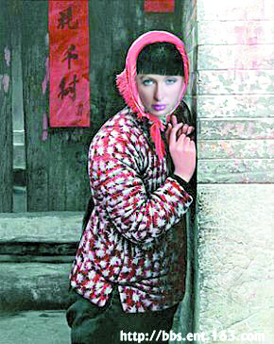 而網(wǎng)友就為她設(shè)計(jì)了很多有中國特色的服裝,其中,有一張“純樸的小!碧貏e引人注目。在這張作品里,希爾頓的頭發(fā)被“染”成了黑色,穿著紅底白色碎花小棉襖,頭上還裹著塊紅布,害羞地倚在家門口的墻上,表情還略帶幾分期待。此情此景,讓人情不自禁地聯(lián)想起鞏俐在《秋菊打官司》中的造型。但與“秋菊”相比,希爾頓顯然要少幾分倔強(qiáng)、多幾分嫵媚。 (王文)